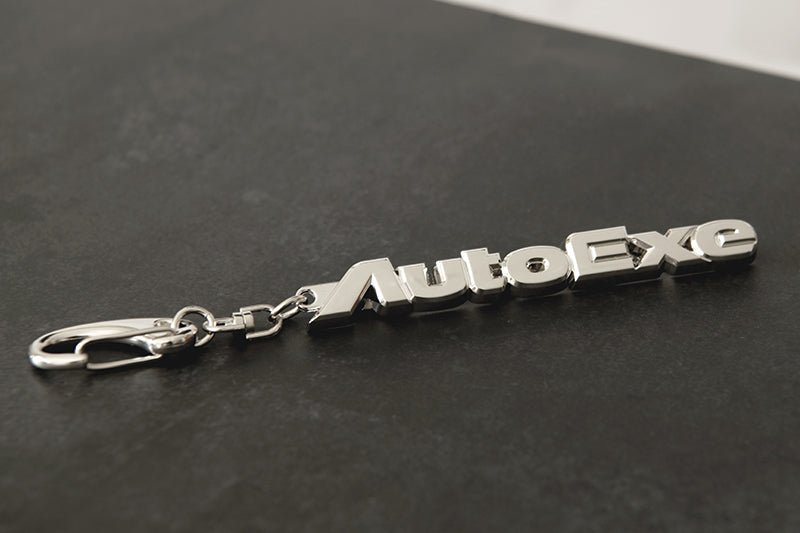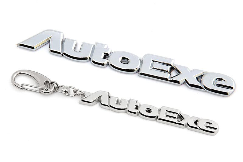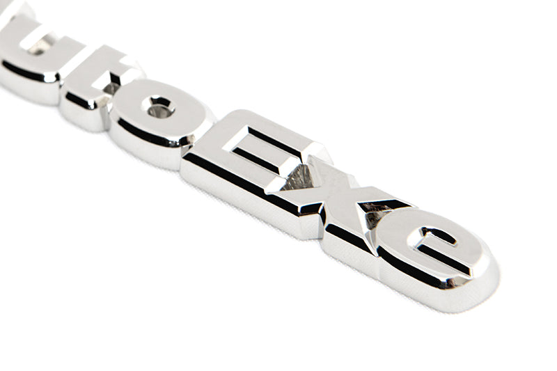 煌びやかなメッキが際立たせる、AutoExeロゴ。