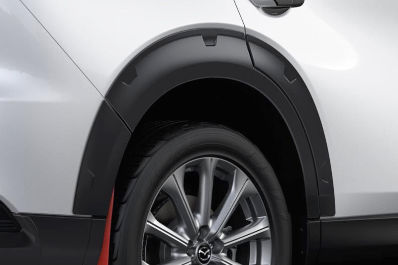 ครีบแนวนอนแบบแกะสลักลึก สีดำด้านให้ความรู้สึกแข็งแกร่งและแข็งแกร่ง พร้อมตราสัญลักษณ์ Mazda ที่ได้รับการแลกเปลี่ยน